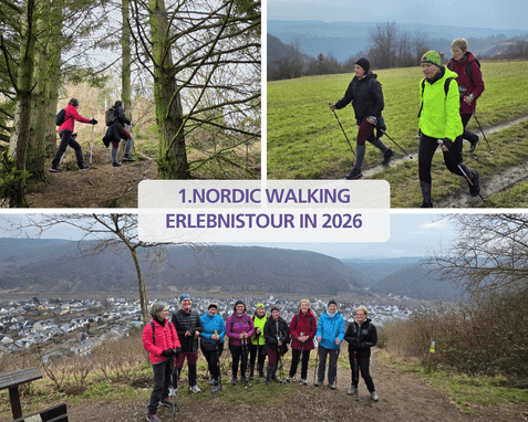 11 Teilnehmer*innen waren gestern bei der 1. Nordic Walking Erlebnistour des Jahres mit Trainerin Carina über die Höhen von Güls und Winningen unterwegs. 11,7 km und 200 Höhenmeter wurden absolviert – durch Weinberge, mit teils knackigen An- und Abstiegen und traumhaften Ausblicken ins Moseltal.