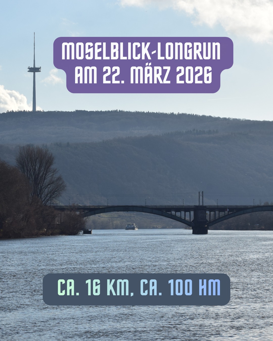 Gemeinsam laufen wir eine abwechslungsreiche Wendepunktstrecke mit herrlichem Moselpanorama – ganz entspannt, ohne Leistungsdruck und wie immer: gemeinsam starten, gemeinsam ankommen.